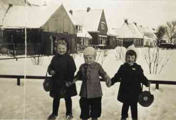 In de sneeuw bij it Ald Tsjerkhof, vl.n.r. Nienke Westerhof, Jelle Attema en The