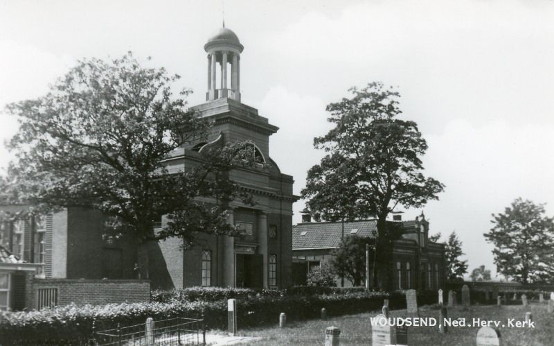 Op de plaats van het tegenwoordige plantsoen lag eertijds het kerkhof van Woudsend.