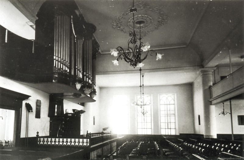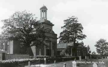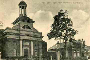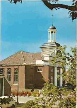 Foto van de Nederlands Hervormde Kerk (nu De Karmel) met rechts daarvan de pasto