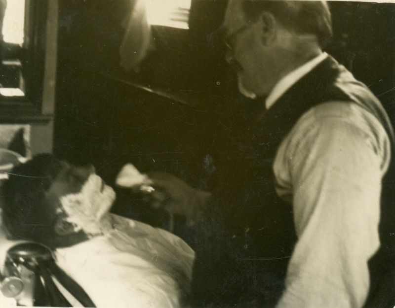 Achter op de foto met een kleine afmeting, staat plus/minus 1935. Kapper Stilma