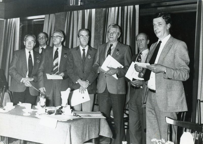 Op bijgaande foto staat het korps uit de jaren zestig “in de houding”, zo te zien bij een wedstrijd, met bevelvoerder Westerhof geheel links. Naast hem staan (v.l.n.r.) H. de Vries, A. Reijenga, G. Bergstra, S. Veenstra, W. van der Pol, W. de Jong, S. Jeltes en S. Jellema.