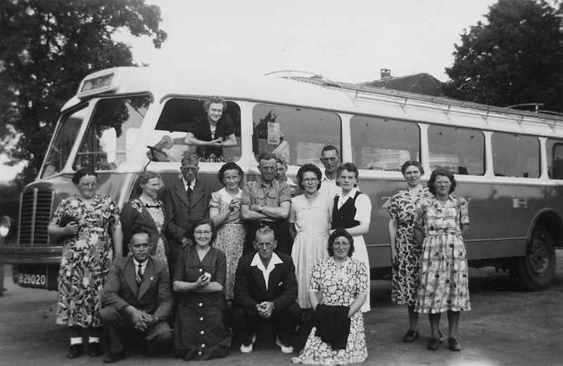 Bijgaande foto is van reisvereniging De Laatste Stuiver. De leden spaarden voor een jaarlijks reisje met de bus. Het waren vaak heel gezellige reisjes, met onderweg spelletjes en de nodige hapjes en drankjes.