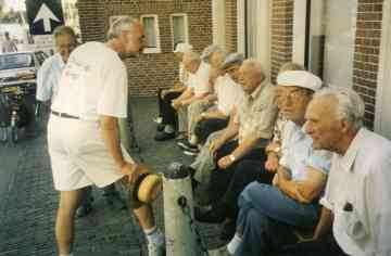 Even een praatje op 't Krûs fan Dyk. Jaap Nagelhout links en Johannes Silvius r