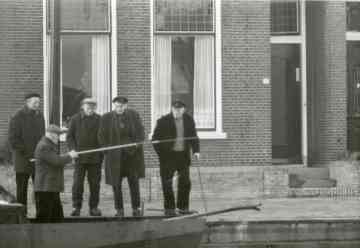 Jan Rondhout staat in de melkvaardersboot met een hengel te vissen. Over belangs