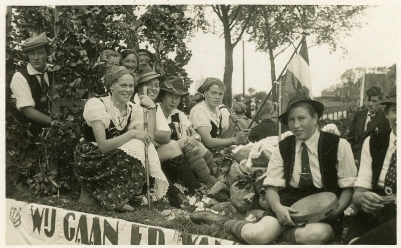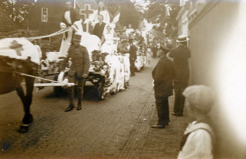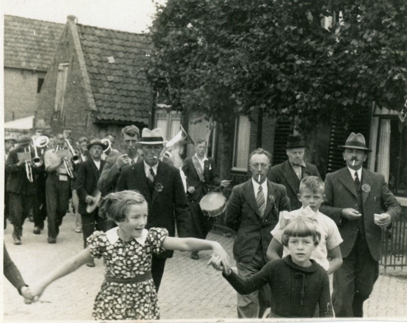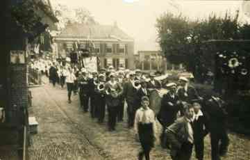 We hebben heel veel foto's van dorpsfeesten uit het verleden. Het ging meestal om het vieren van een koninklijke verjaardig of jubileum, maar ook een feest waarin het einde van de Franse overheersing werd gevierd. Er werden optochten gehouden en ook volksspelen, zoals zaklopen en kuipjesteken.Bijgaande foto is gemaakt ter gelegenheid van de geboorte van Prinses Juliana 30 april 1909.