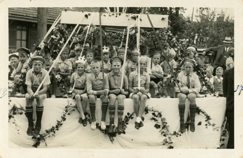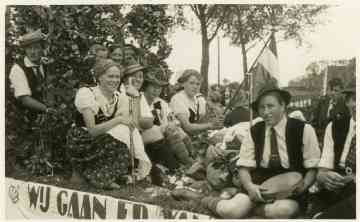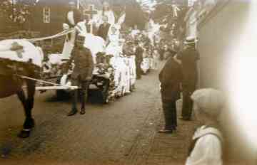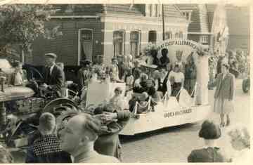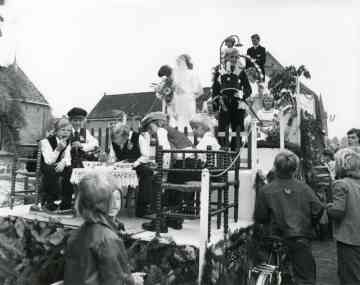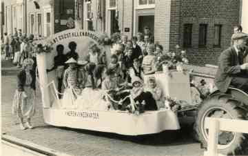 .Bij een dorpsfeest hoort een optocht. Hier de praalwagen van buurtvereniging "O