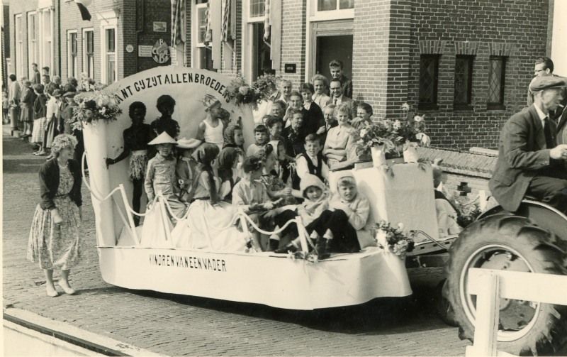 Deze optocht van eind vijftiger jaren van de vorige eeuw, laat een tekstueel zwa