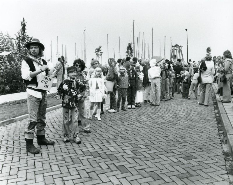 Bij een dorpsfeest hoort een optocht. Deze groep van buurtvereniging "Oer de Wei