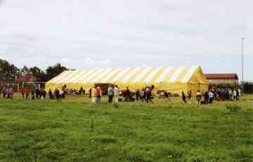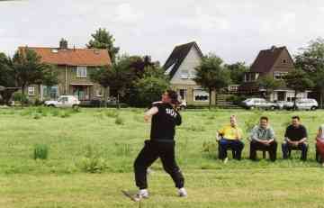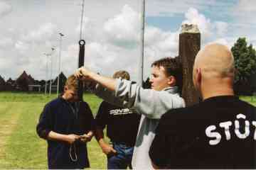 Nog even trainen voor de wedstrijd van vanmiddag tijden het feest voor "de sterk