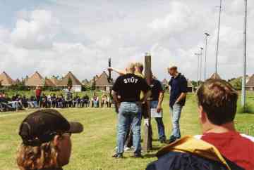 Opname tijdens de wedstrijd "De sterkste man van Woudsend"op de ijsbaan. Deelne
