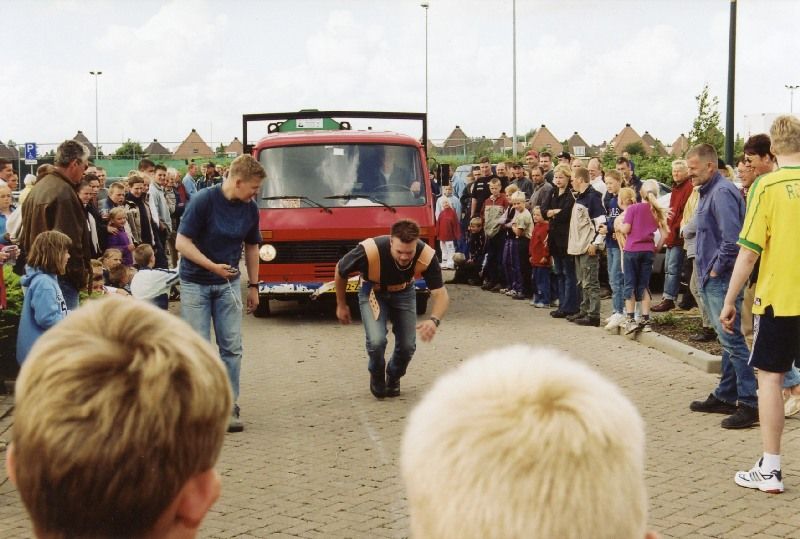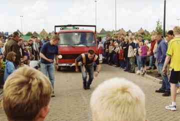Onderdeel van "de sterkste man" het trekken van de vrachtauto.