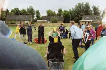 Een foto van het dorpsfeest waarbij het einde van de 80-jarige oorlog werd na ge
