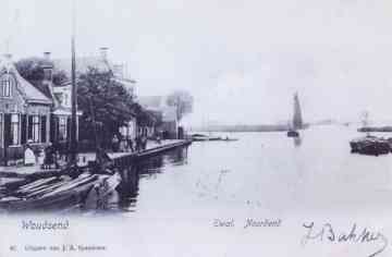 Ansichtkaart met het gezicht op Woudsend langs de Weisleat, het Julianaplantsoen