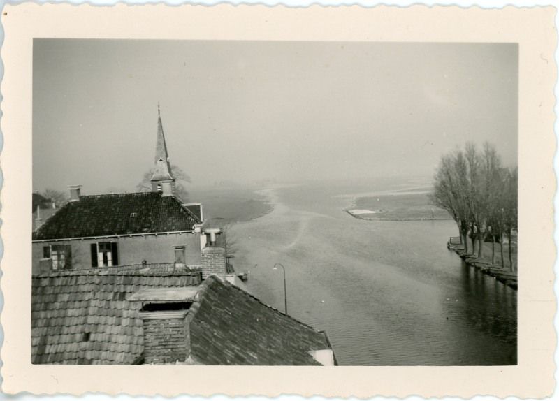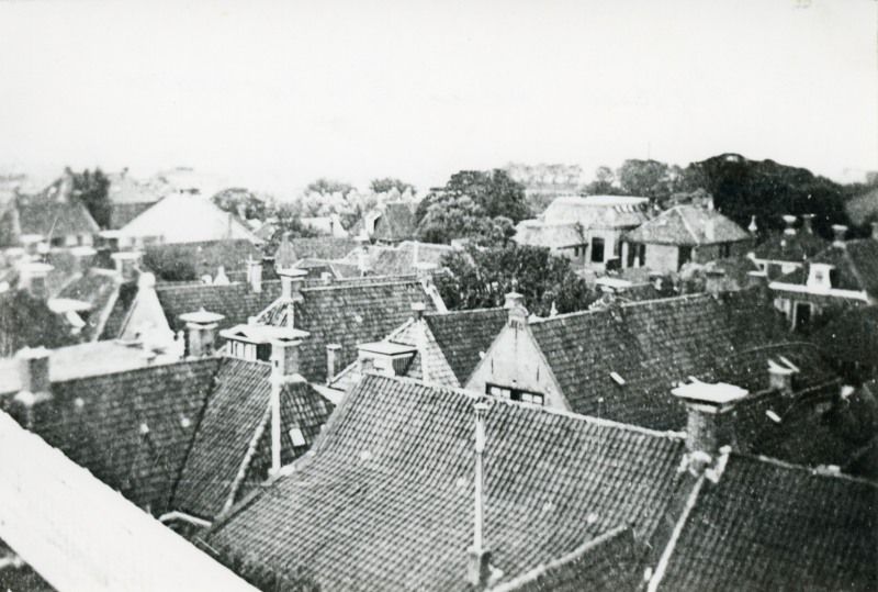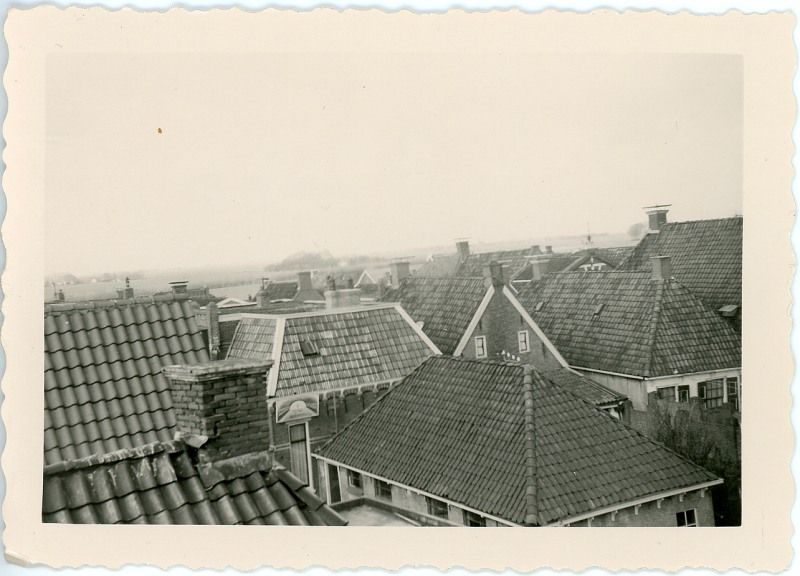 Uitzicht vanaf een dak, op de Noorder Ee. Links, het hoge huis met ramen is de G