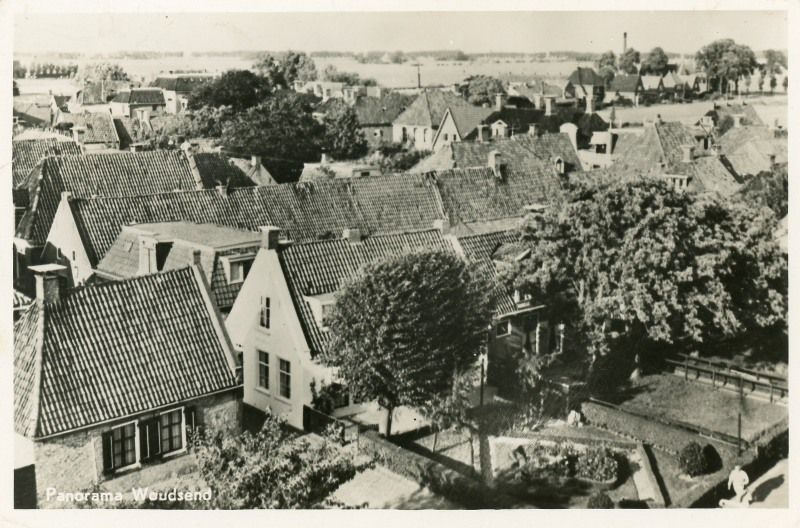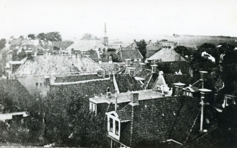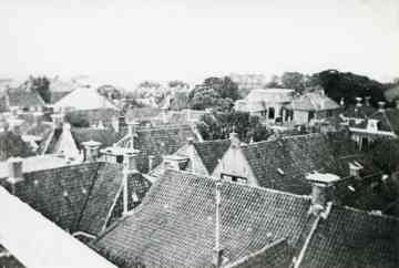 Een ansichtkaart vanuit de toren van de Hervormde Kerk genomen. Links achter he