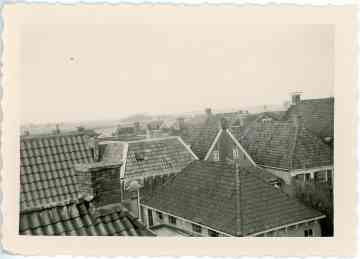 Uitzicht vanaf een dak. Het pand in het centrum met het platte dak was de kruide