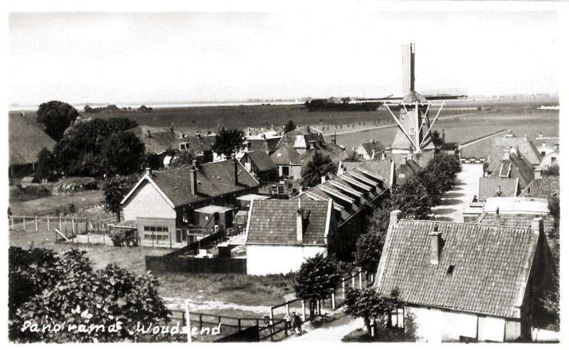 Ansichtkaart Woudsend met gezicht op het dorp met houtzaagmolen De Jager en verd
