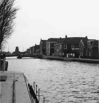 Een plaatje met het gezicht op de Eewal zuid. Omstreeks 1960. Het gebouw links w