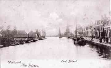 Op de foto zien we de Iewâl rond 1910, genomen vanaf houtzaagmolen De Jager en met houtzaagmolen De Hoop op de achtergrond.