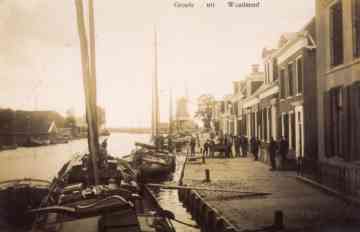 Een ansichtkaart met het zicht op de Eewal. Meestal zijn de foto's genomen vanaf