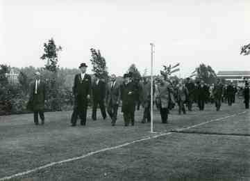 Burgemeester Van Hout van Wymbritseradeel heeft in 1967 het nieuwe sportveldenc