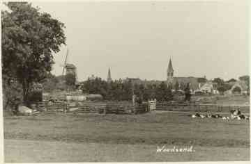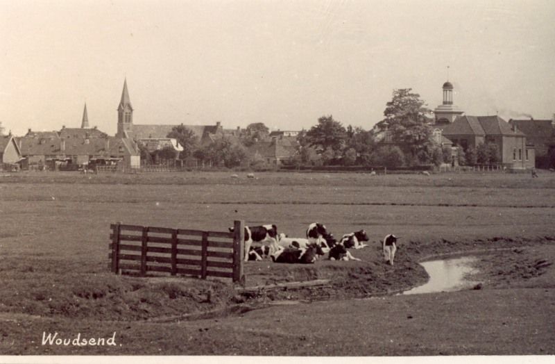 Deze kaart laat Woudsend zien vanuit Ypecolsga. Rechts op de achtergrond is een