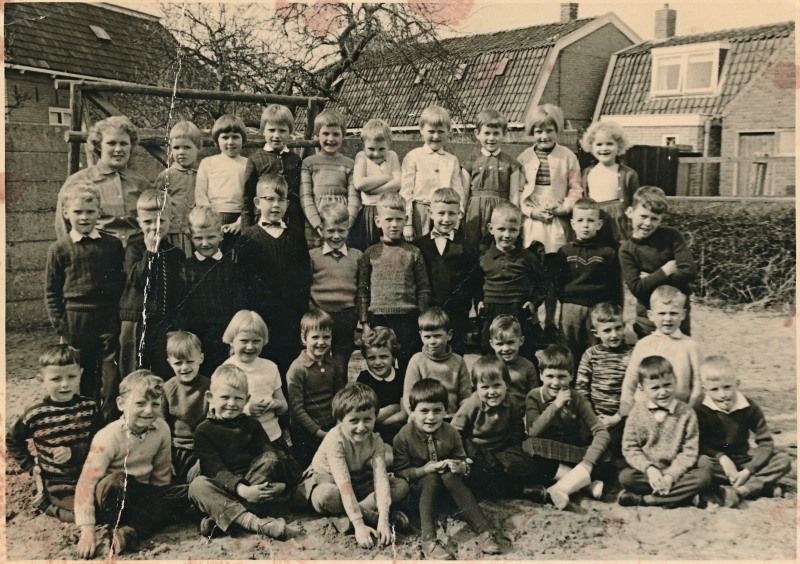 De kleuterschool in vroegere dagen in de Midstrjitte zuid. De foto is achter het