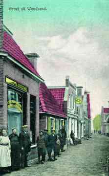 Een ingekleurde ansichtkaart van de Noordzijde van de Midstrjitte.