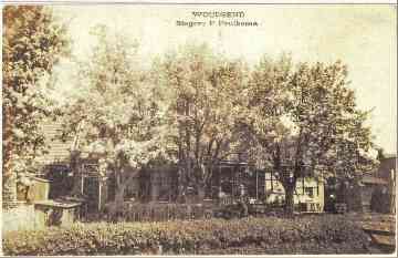 De slagerij met winkel van Popke Pruiksma verscholen achter de bomen. De zaak we