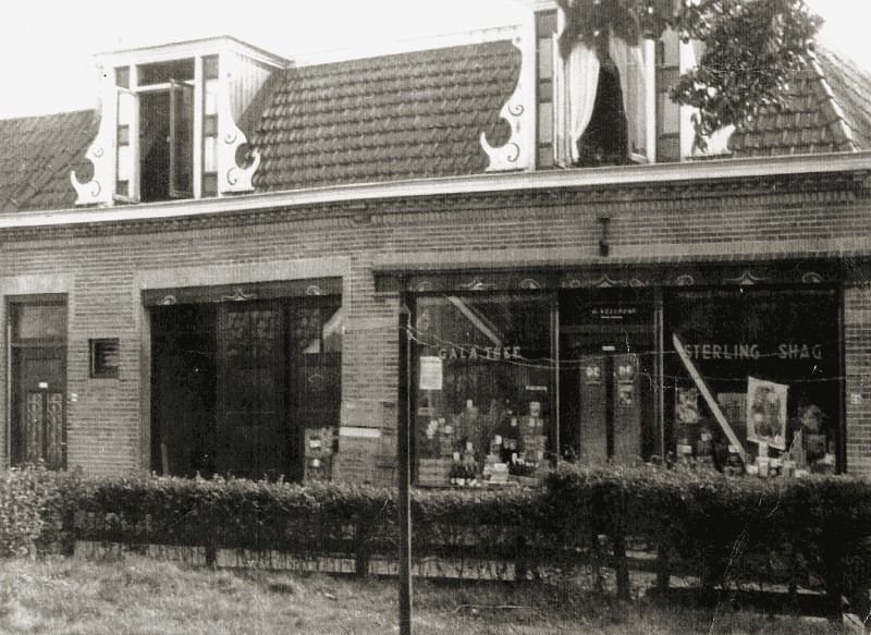 Dit was de kruidenierszaak op de Nije Buorren van Veldman. Tegenover deze winkel
