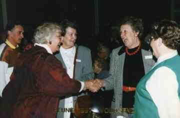 .Een foto van de reunie in het MFC. V.l.n.r.: Fetsje de Vries-Attema, Rinus Hiel