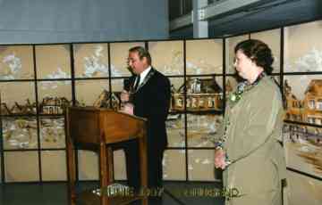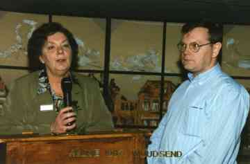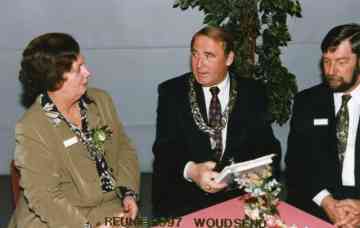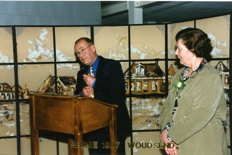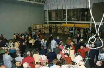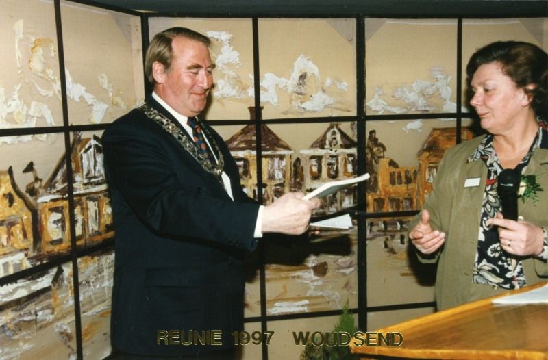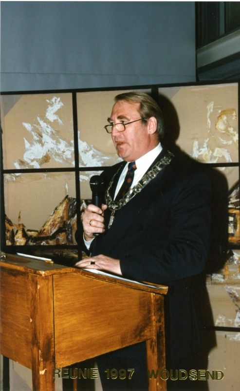 Een foto van de reünie..De burgemeester Koopmans houdt een toespraakje.