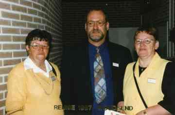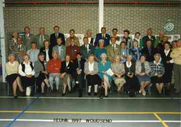 .Een groepsfoto reünie 1997 met:Achter v.l.n.r.: Afke Okma, Max Oppedijk, Siep