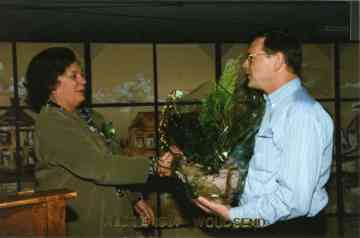 Een tweetal foto's van de reünie. Warme woorden en een pot met winterharde plan