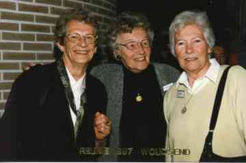Een foto van de reünie..V.l.n.r: Eeke Pebesma, Griet Blanken-Schilstra, Gep Kre