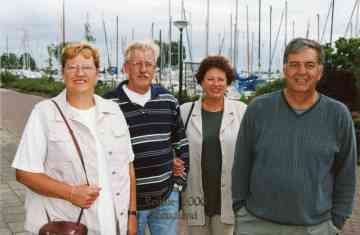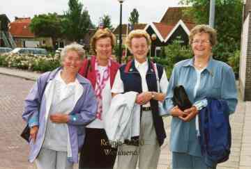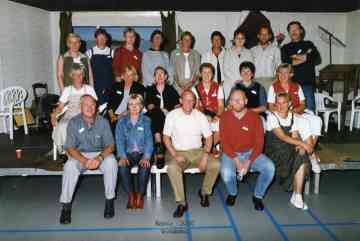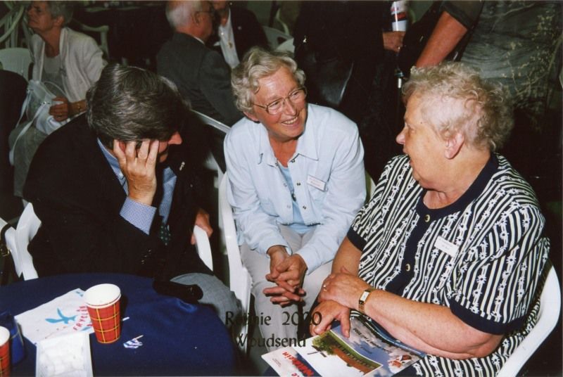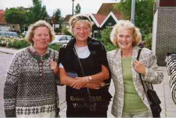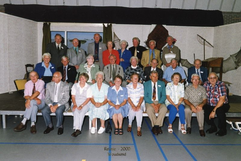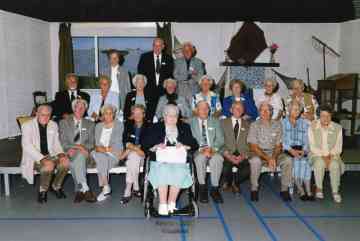 Een groepsfoto van een deel van de reünisten met o.a. Hans Poortema, Janna Plan