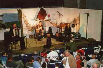 Reünie 2000 Woudsend. Om de sfeer van de reünie te verhogen was er een muzikaa