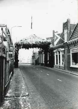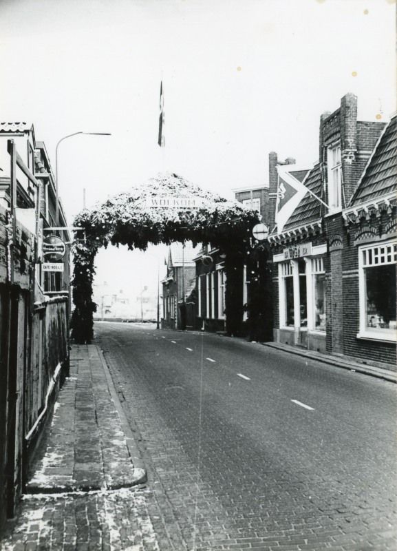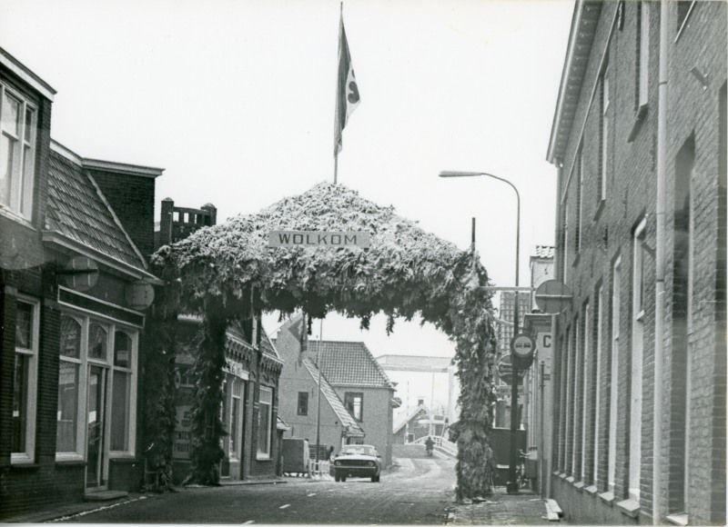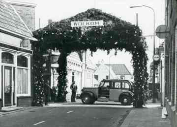 De welkomstboog bij het dorpshuis De Driuwpôlle.