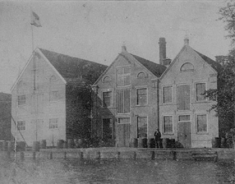 Op deze foto zijn de gebouwen te zien van de voormalige stoomolieslagerij De Vla