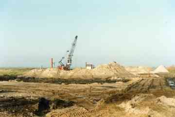 Van der Meulen is hier bezig met het verplaatsen van zand.