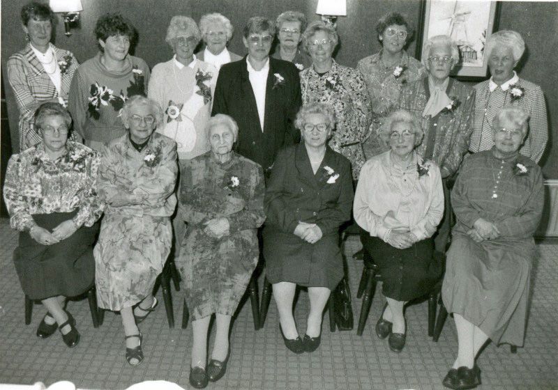 Achter vlnr.: Geertje Postma-Bergsma, Anneke Pietersma-Hoekstra, Sijke Haringa-F