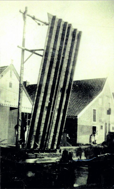 Over de Weisleat lag deze ophaalbrug. Op de achtergrond het pand van de touwslag