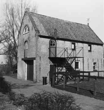 Foto met de tekst Gezicht op de R.K. kerk Woudsend. Dit is de Waechswâl, vroege