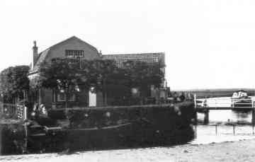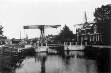 De oude draaibrug over de Ee, met de brugwachterswoning en daarnaast het Koetshu