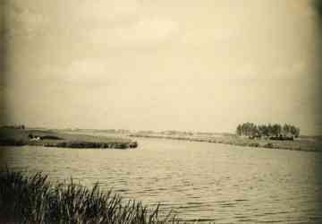Een foto van de Noorder Ee met rechts de boerderij van de familie Tromp.