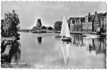 Woudsend in vroegere dagen. De Wegsloot met de beroepsvissers in een bootje. Een