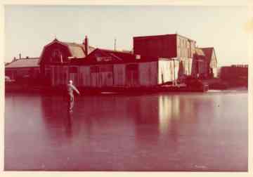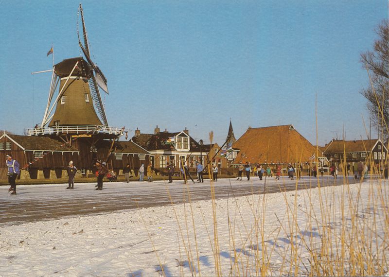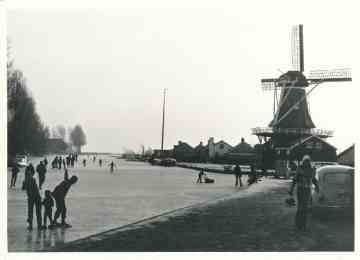 IJspret op de Ee met op de achtergrond houtzaagmolen De Jager met het Molenhuis.