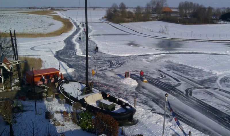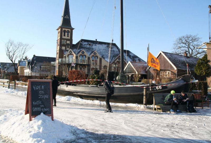 Schaatsen op de Ee en even uitrusten met chocolade melk bij de Koek en Zopie.