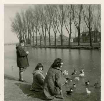 Deze 3 dames waren werknemers van Woudsend Verzekeringen en voerden de eenden ti