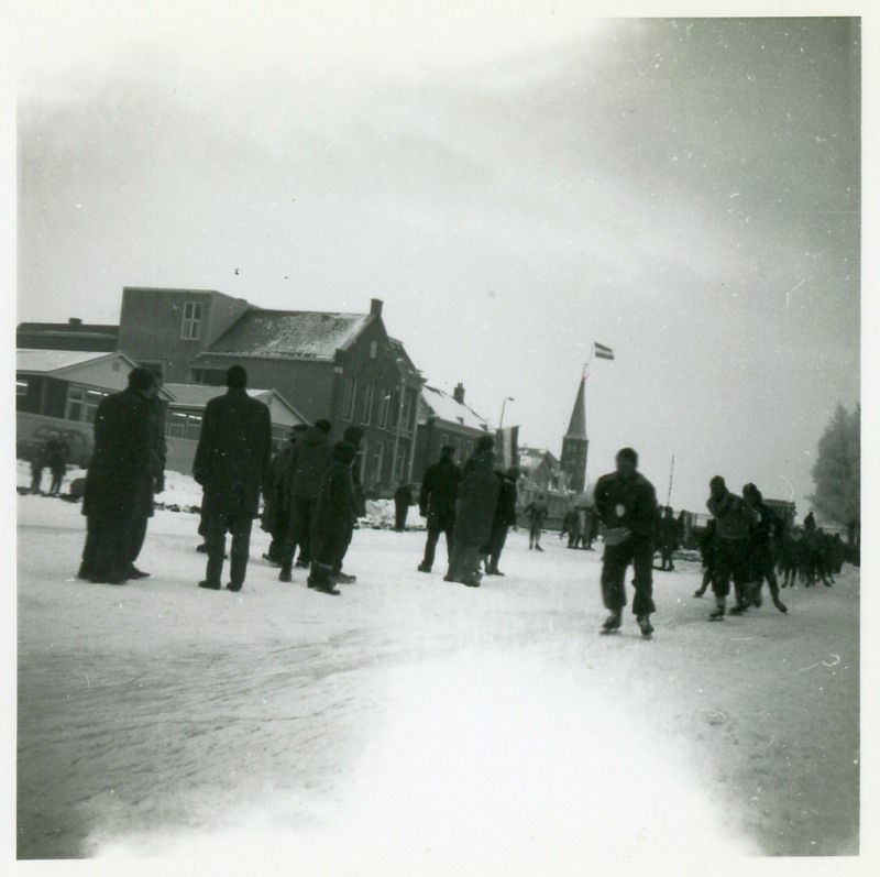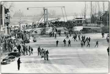 Veel drukte op de Ie bij de elfstedentocht van 1963. Het was erg koud en er lag